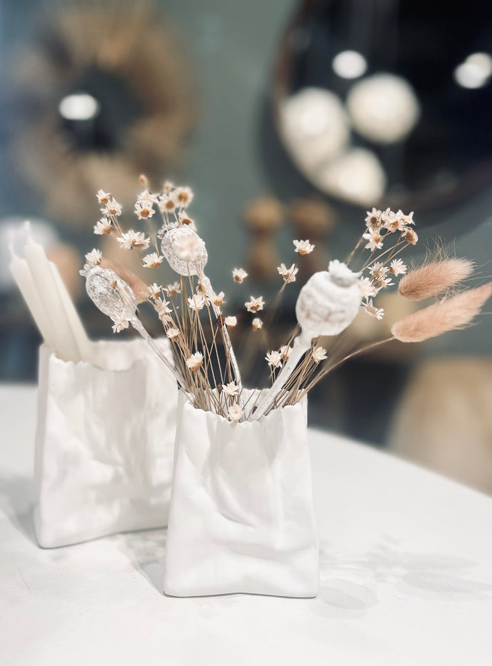 Small Paper Bag Vase - White