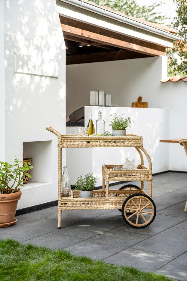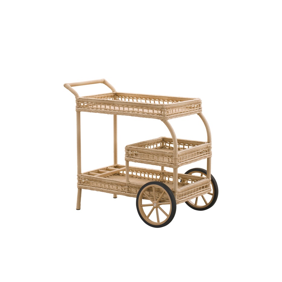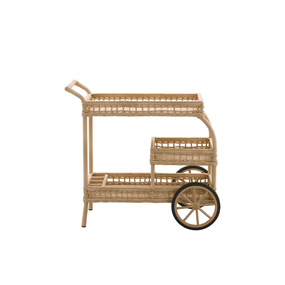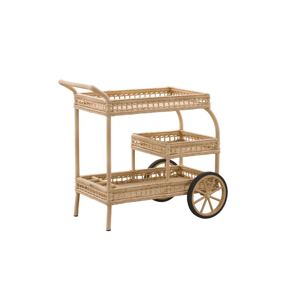The James Exterior Trolley from Sika Design is an essential piece of the Georgia Garden collection, blending British colonial style with classical Danish wicker furniture for a timeless yet functional design. Constructed for strength and versatility, the trolley is ideal for both private use and commercial settings, enhancing the atmosphere of hotels and restaurants. Its fitted wheels ensure easy mobility, making it a practical choice for various occasions. Whether serving drinks on a warm summer day or displaying flowers and decorative items, the James Trolley adds a sophisticated touch to any space. Featuring a durable aluminium frame woven with weather-resistant ArtFibre, this outdoor bar trolley is engineered to withstand outdoor conditions without requiring maintenance. Enjoy its utility and style throughout the year. Elevate your outdoor experience with the James Exterior Trolley, where practicality meets aesthetic appeal.